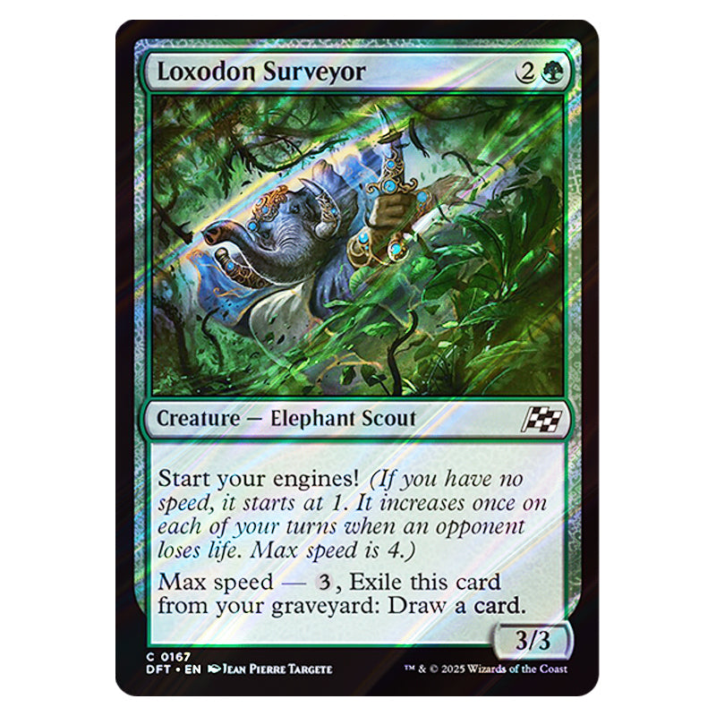 Loxodon Surveyor is a Common, Creature - Elephant Scout card from the Magic The Gathering set Aetherdrift (MTGSC-DFT-0167)