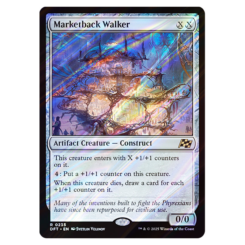 Marketback Walker is a Rare, Artifact Creature - Construct card from the Magic The Gathering set Aetherdrift (MTGSC-DFT-0235)