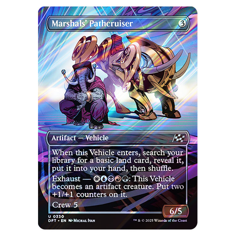 Marshals' Pathcruiser is a Uncommon, Artifact - Vehicle card from the Magic The Gathering set Aetherdrift (MTGSC-DFT-0330)