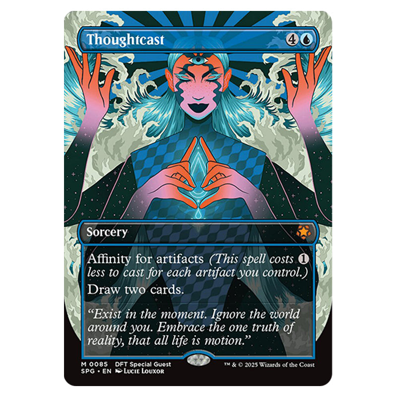 Thoughtcast is a Mythic, Sorcery card from the Magic The Gathering set Aetherdrift - Special Guests (MTGSC-SPG-0085)