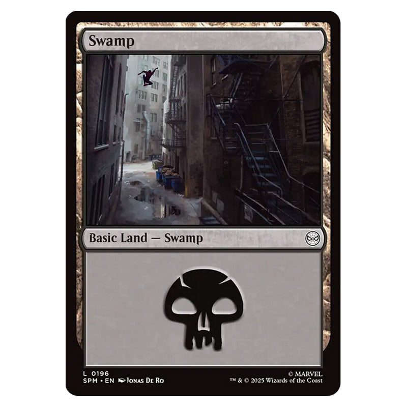 Swamp is a Common, Basic Land - Swamp card from the Magic The Gathering set Marvel's Spider-Man (MTGSC-SPM-0196)