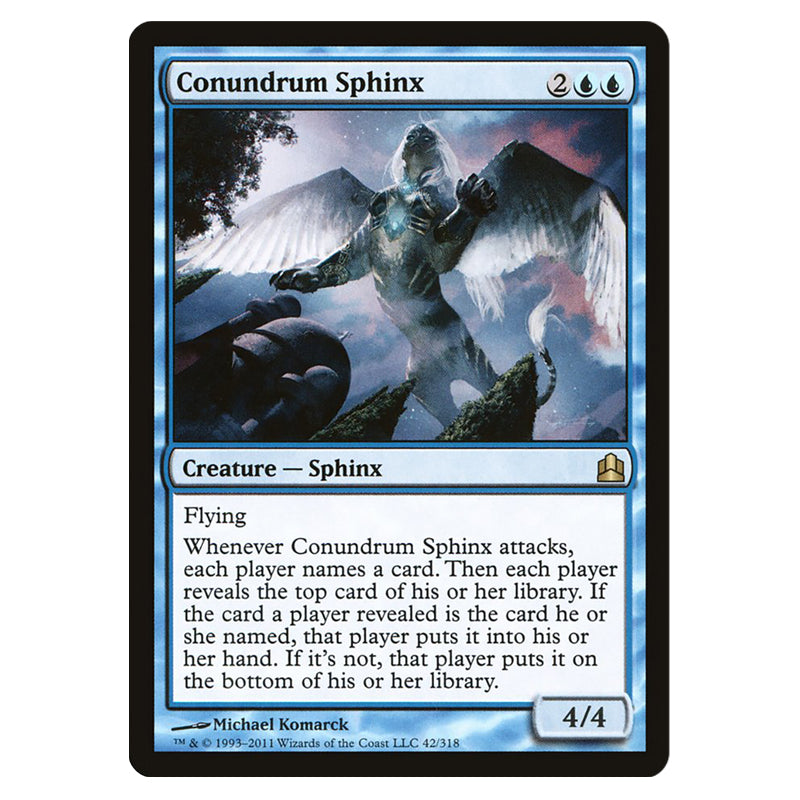 Conundrum Sphinx is a Rare, Creature - Sphinx card from the Magic The Gathering set Commander 2011 (MTGSC-CMD-42)