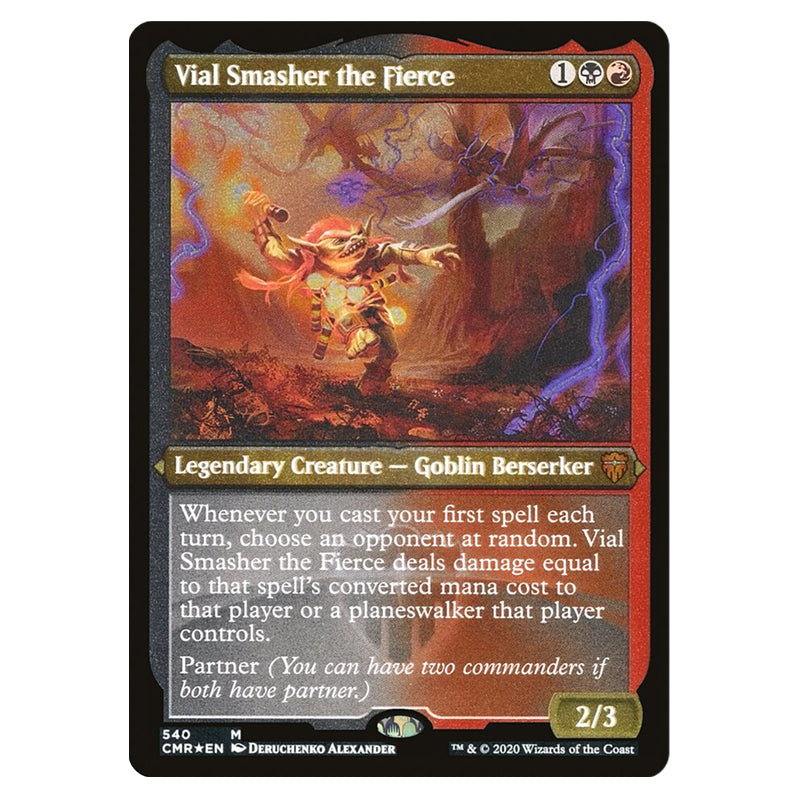 Vial Smasher the Fierce is a Mythic, Legendary Creature - Goblin Berserker card from the Magic The Gathering set Commander Legends (MTGSC-CMR-540)