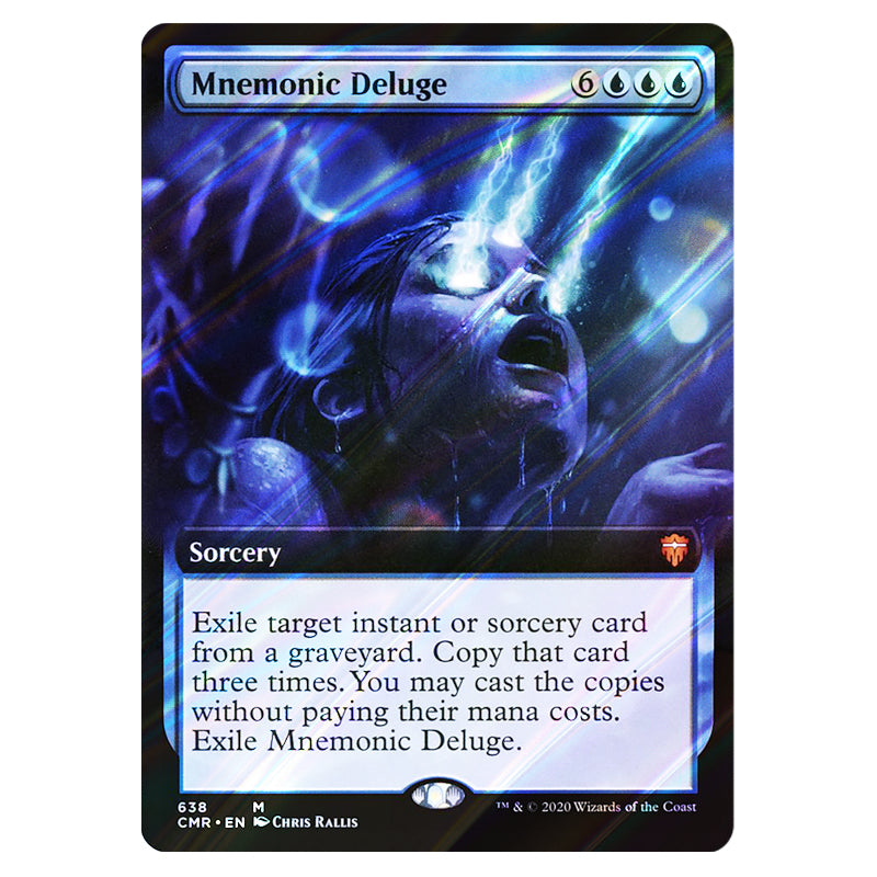 Mnemonic Deluge is a Mythic, Sorcery card from the Magic The Gathering set Commander Legends (MTGSC-CMR-638)