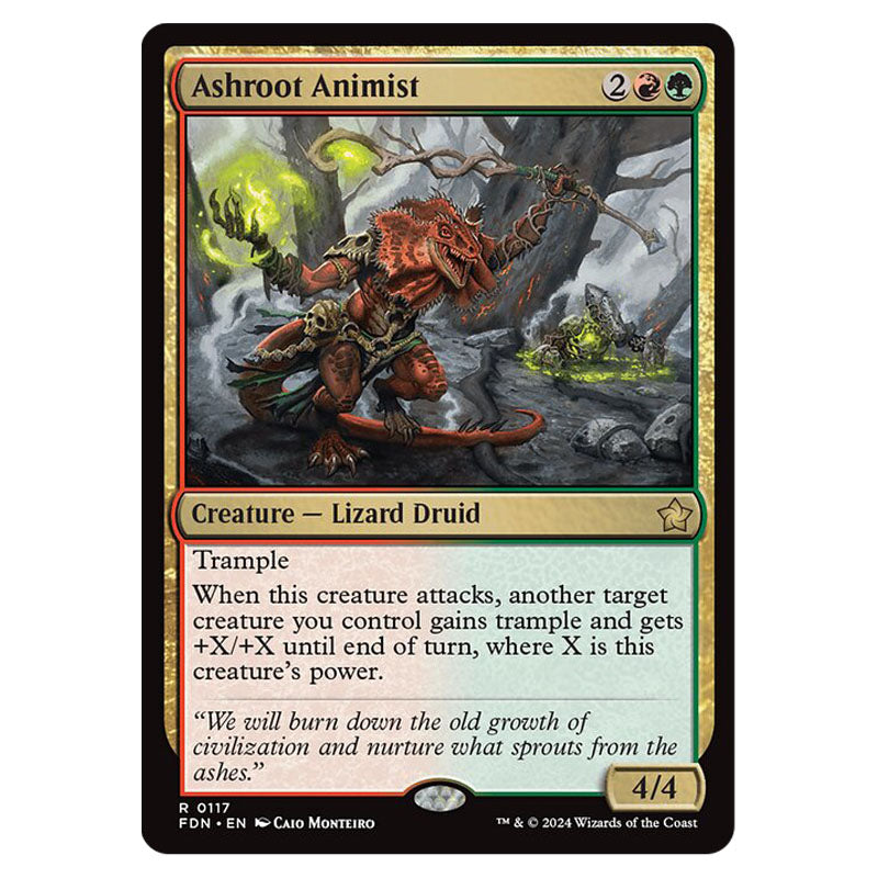 Ashroot Animist is a Rare, Creature - Lizard Druid card from the Magic The Gathering set Foundations (MTGSC-FDN-0117)