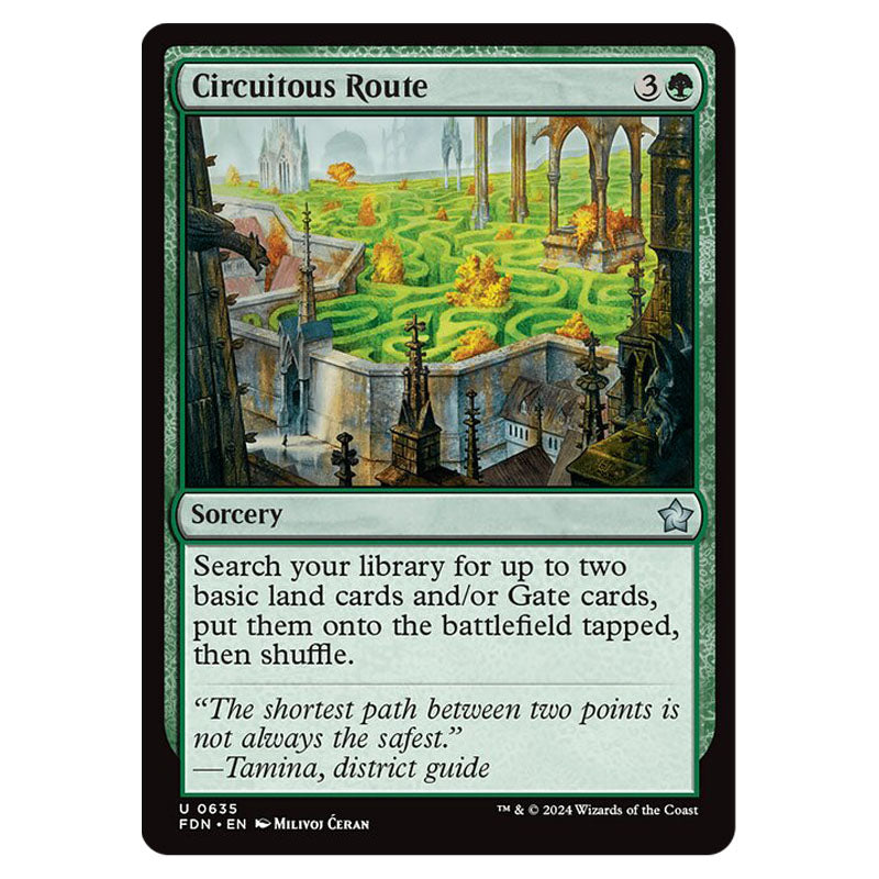 Circuitous Route is a Uncommon, Sorcery card from the Magic The Gathering set Foundations (MTGSC-FDN-0635)