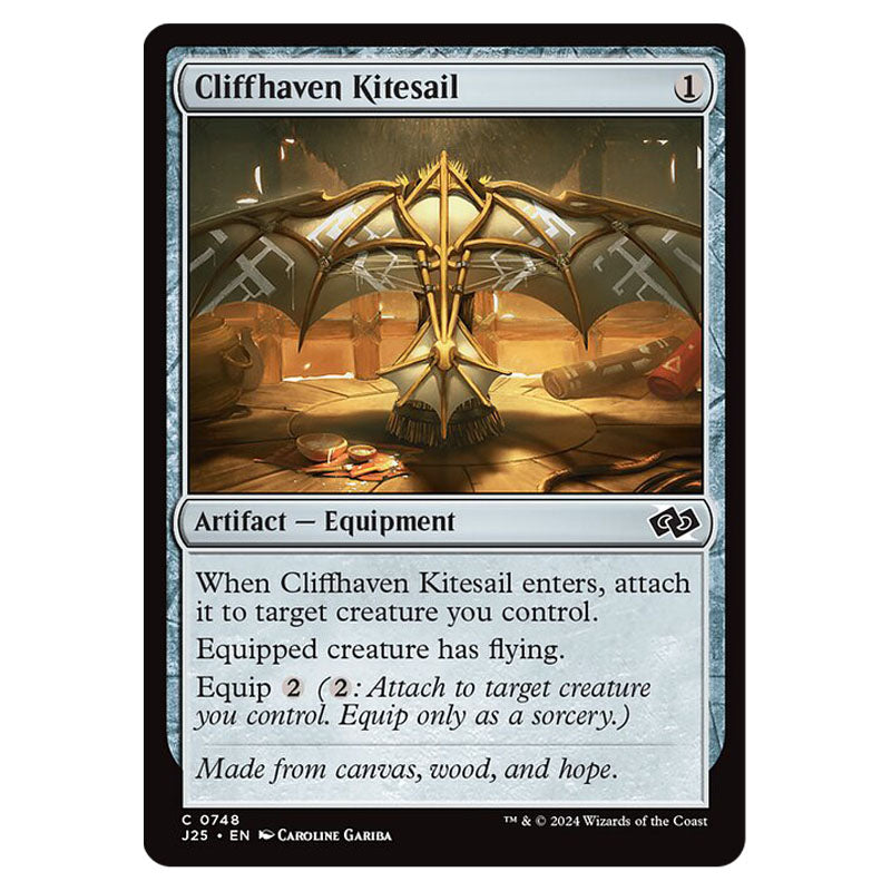 Cliffhaven Kitesail is a Common, Artifact - Equipment card from the Magic The Gathering set Foundations Jumpstart (MTGSC-J25-0748)