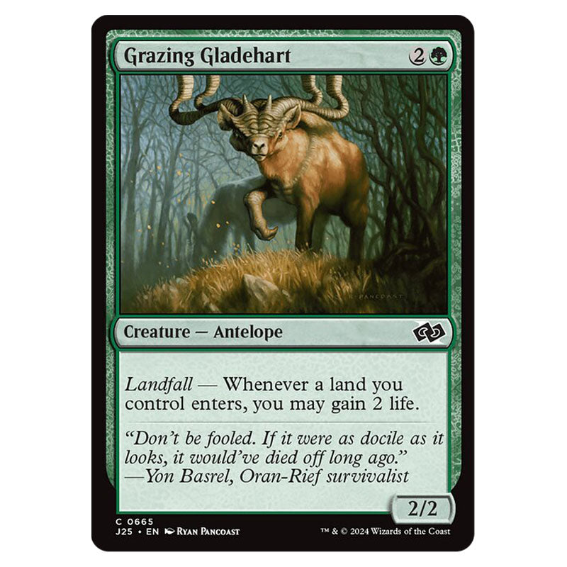 Grazing Gladehart is a Common, Creature - Antelope card from the Magic The Gathering set Foundations Jumpstart (MTGSC-J25-0665)