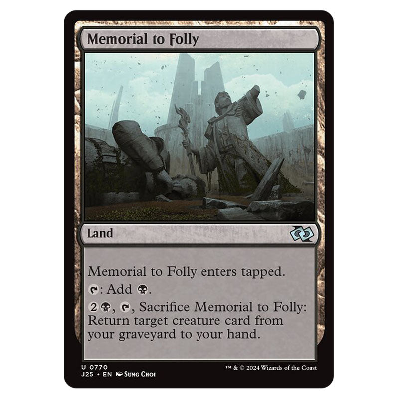 Memorial to Folly is a Uncommon, Land card from the Magic The Gathering set Foundations Jumpstart (MTGSC-J25-0770)