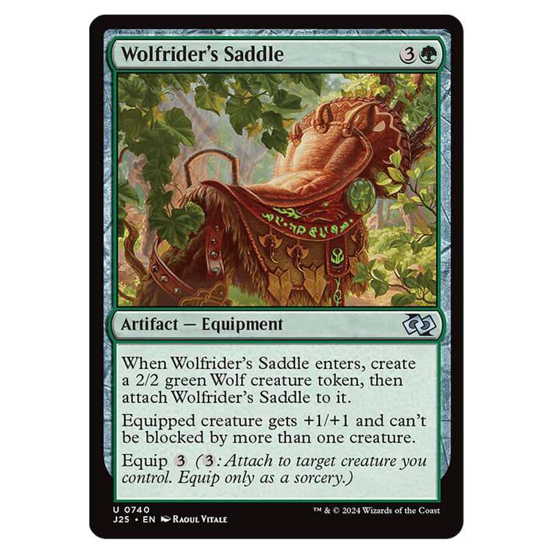 Wolfrider's Saddle is a Uncommon, Artifact - Equipment card from the Magic The Gathering set Foundations Jumpstart (MTGSC-J25-0740)