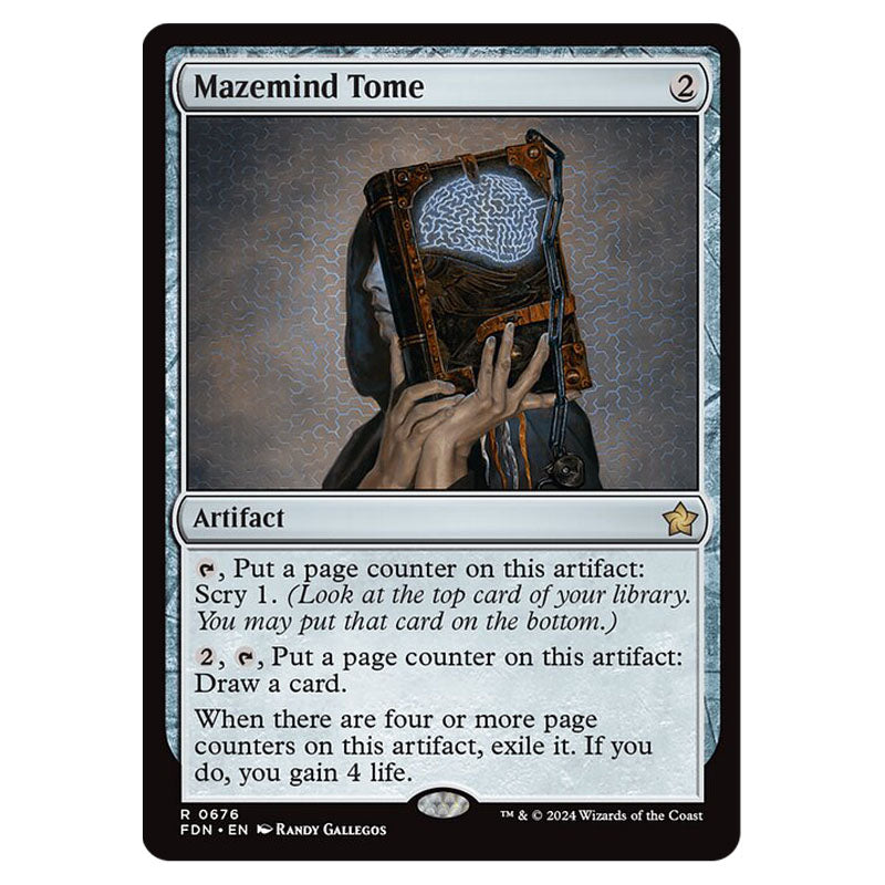 Mazemind Tome is a Rare, Artifact card from the Magic The Gathering set Foundations (MTGSC-FDN-0676)