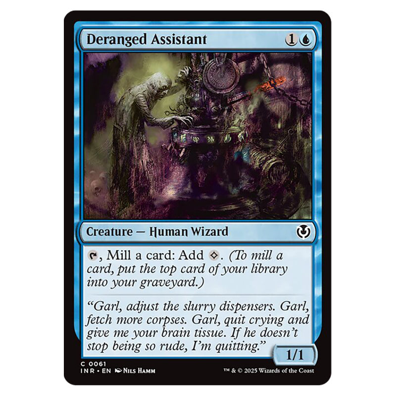 Deranged Assistant is a Common, Creature - Human Wizard card from the Magic The Gathering set Innistrad Remastered (MTGSC-INR-061)