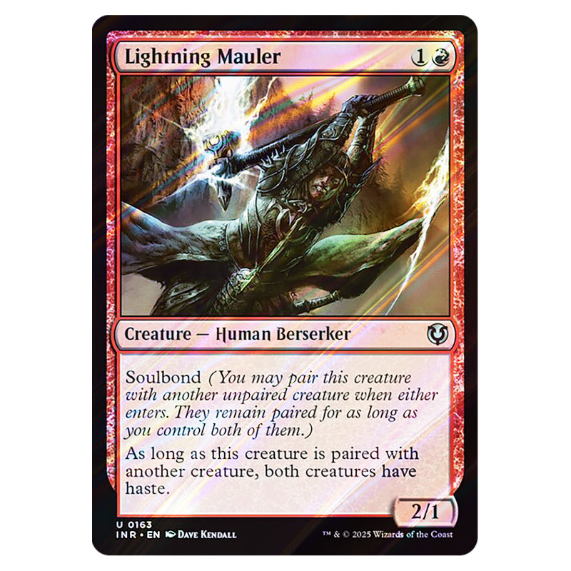 Soulbond (You may pair this creature with another unpaired creature when either enters. They remain paired for as long as you control both of them.) As long as Lightning Mauler is paired with another creature, both creatures have haste.