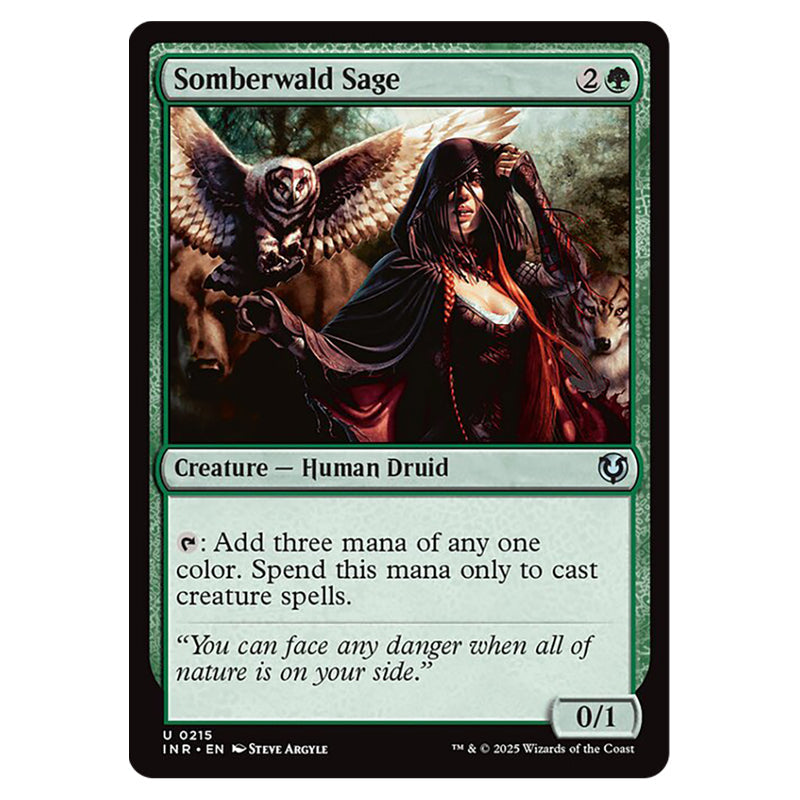 Somberwald Sage is a Uncommon, Creature - Human Druid card from the Magic The Gathering set Innistrad Remastered (MTGSC-INR-215)