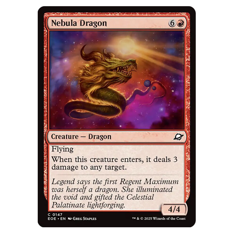 Nebula Dragon is a Common, Creature - Dragon card from the Magic The Gathering set Edge of Eternities (MTGSC-EOE-0147)