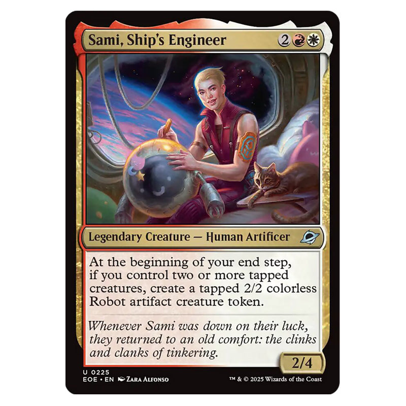 Sami, Ship's Engineer is a Uncommon, Legendary Creature - Human Artificer card from the Magic The Gathering set Edge of Eternities (MTGSC-EOE-0225)