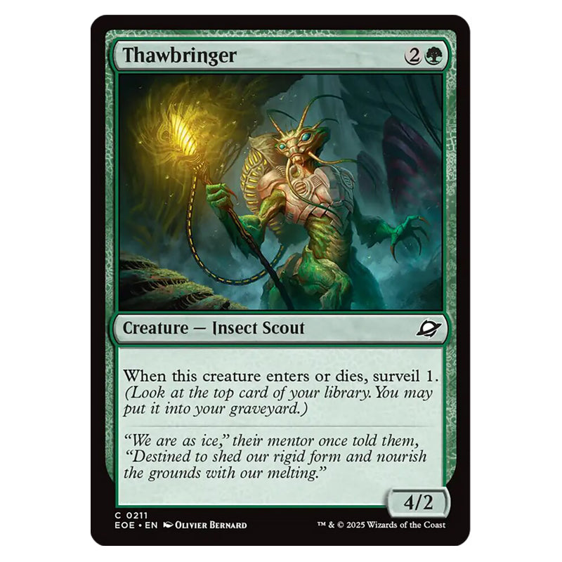 Thawbringer is a Common, Creature - Insect Scout card from the Magic The Gathering set Edge of Eternities (MTGSC-EOE-0211)