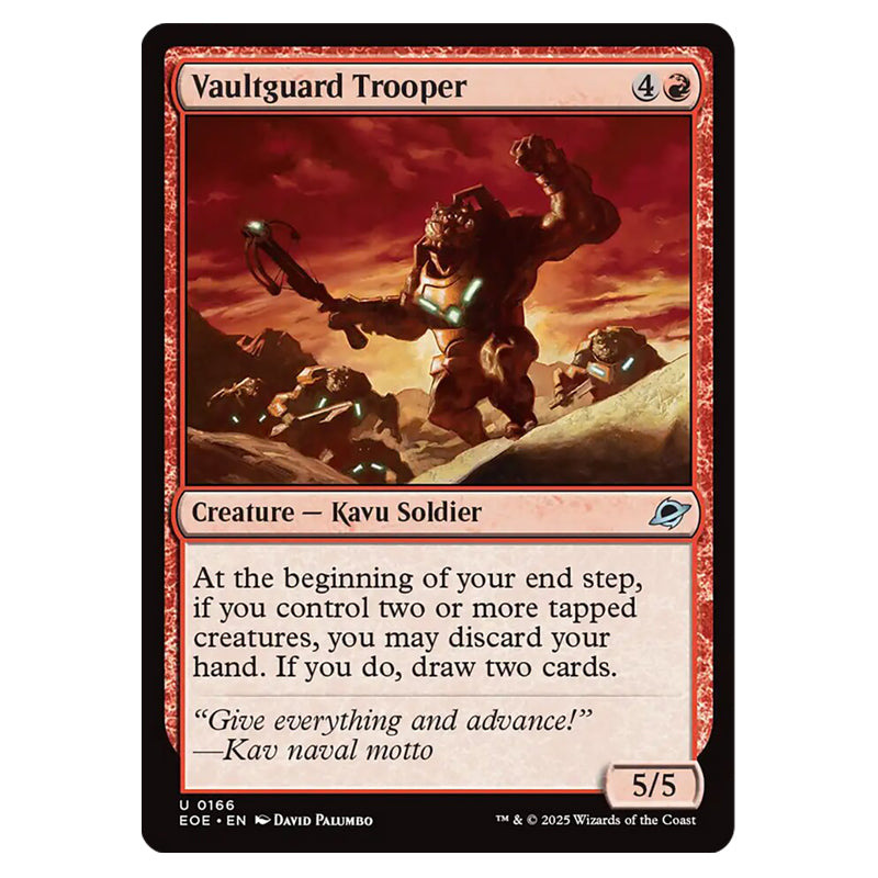 Vaultguard Trooper is a Uncommon, Creature - Kavu Soldier card from the Magic The Gathering set Edge of Eternities (MTGSC-EOE-0166)