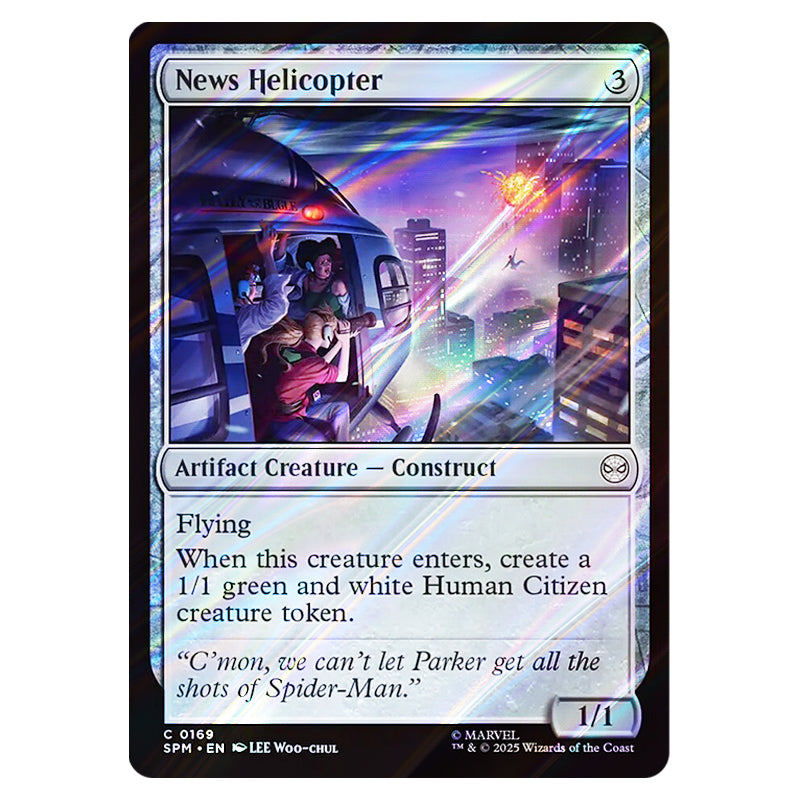 News Helicopter is a Common, Artifact Creature - Construct card from the Magic The Gathering set Marvel's Spider-Man (MTGSC-SPM-0169)