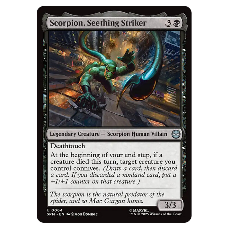 Scorpion, Seething Striker is a Uncommon, Legendary Creature - Scorpion Human Villain card from the Magic The Gathering set Marvel's Spider-Man (MTGSC-SPM-0064)