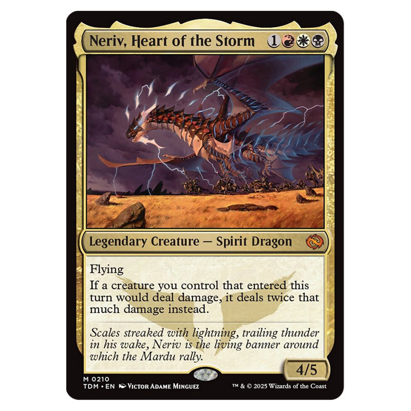 Neriv, Heart of the Storm is a Mythic, Legendary Creature - Spirit Dragon card from the Magic The Gathering set Tarkir: Dragonstorm (MTGSC-TDM-0210)