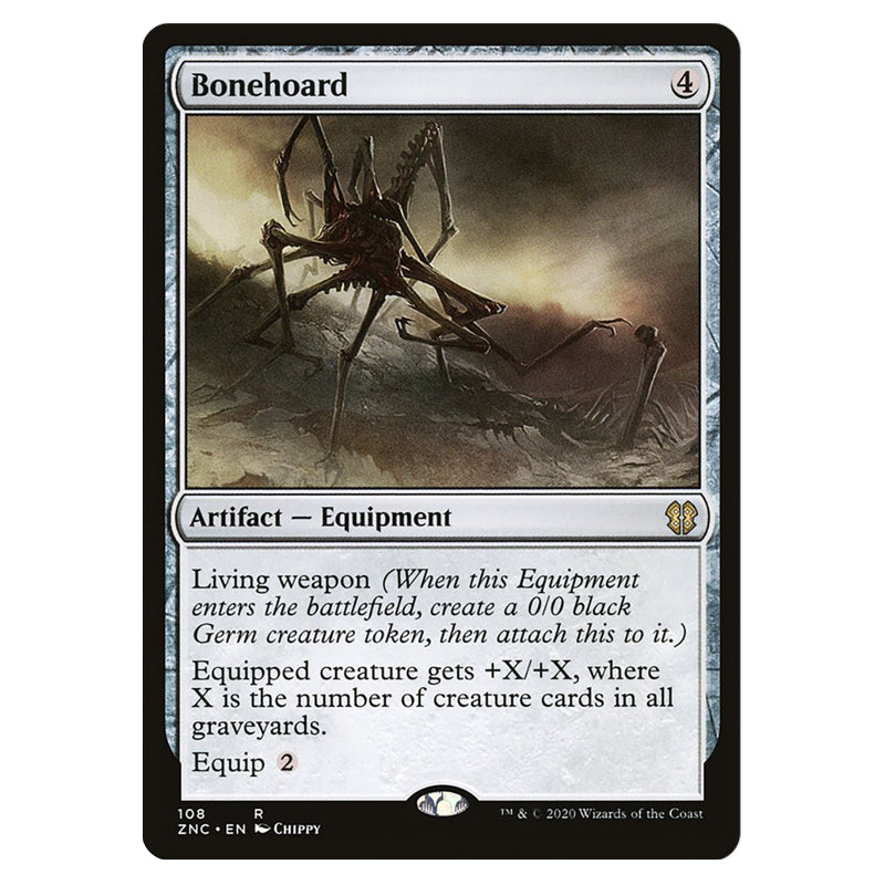 Bonehoard is a Rare, Artifact - Equipment card from the Magic The Gathering set Zendikar Rising Commander (MTGSC-ZNC-108)