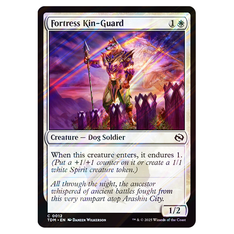 Fortress Kin-Guard is a Common, Creature - Dog Soldier card from the Magic The Gathering set Tarkir: Dragonstorm (MTGSC-TDM-0012)