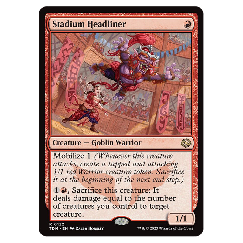 Stadium Headliner is a Rare, Creature - Goblin Warrior card from the Magic The Gathering set Tarkir: Dragonstorm (MTGSC-TDM-0122)