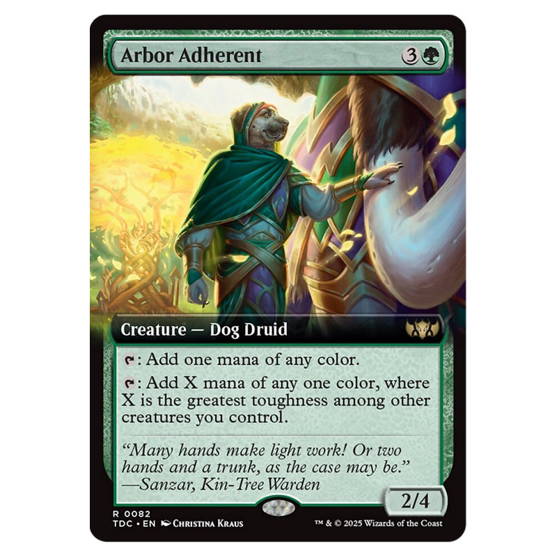Arbor Adherent is a Rare, Creature - Dog Druid card from the Magic The Gathering set Tarkir: Dragonstorm Commander (MTGSC-TDC-0082)