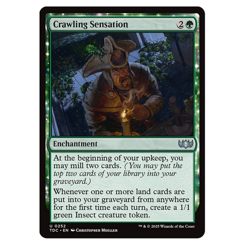 Crawling Sensation is a Uncommon, Enchantment card from the Magic The Gathering set Tarkir: Dragonstorm Commander (MTGSC-TDC-0252)