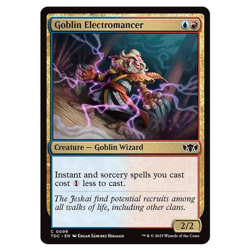 Goblin Electromancer is a Common, Creature - Goblin Wizard card from the Magic The Gathering set Tarkir: Dragonstorm Commander (MTGSC-TDC-0099)