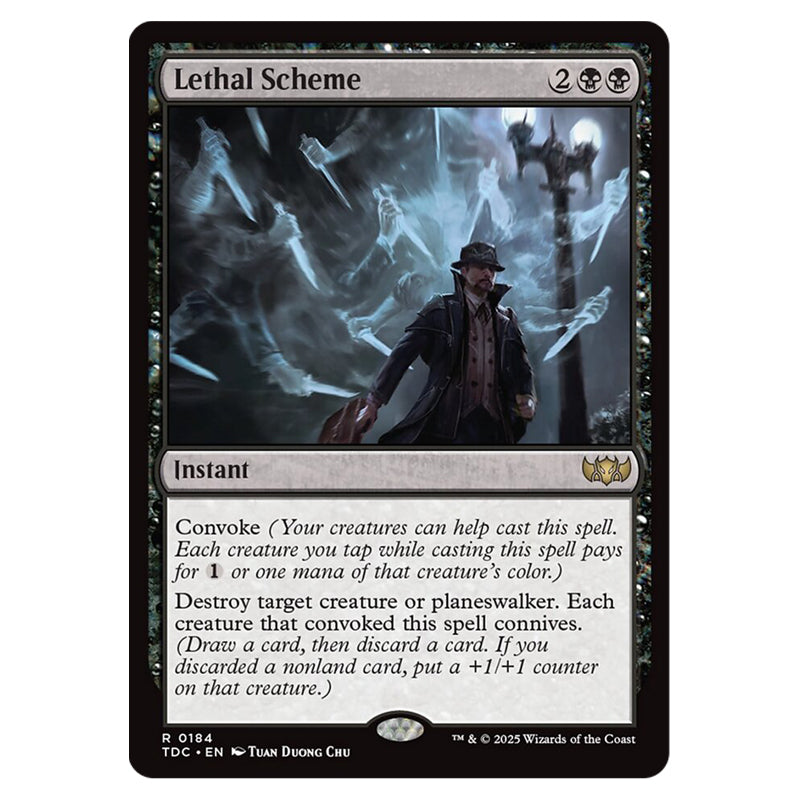 Lethal Scheme is a Rare, Instant card from the Magic The Gathering set Tarkir: Dragonstorm Commander (MTGSC-TDC-0184)