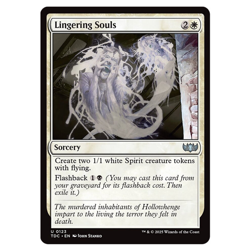 Lingering Souls is a Uncommon, Sorcery card from the Magic The Gathering set Tarkir: Dragonstorm Commander (MTGSC-TDC-0123)