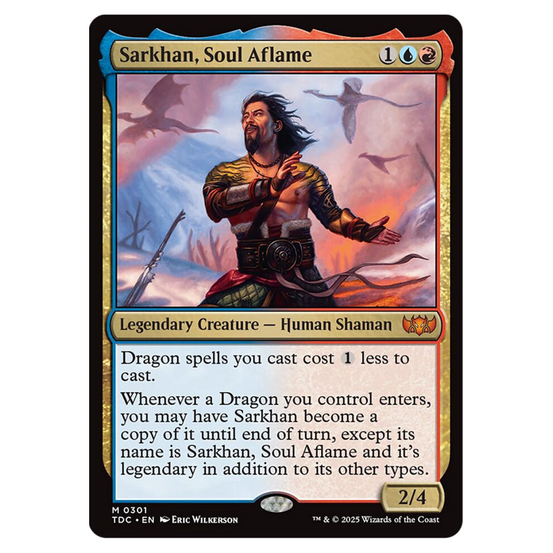 Sarkhan, Soul Aflame is a Mythic, Legendary Creature - Human Shaman card from the Magic The Gathering set Tarkir: Dragonstorm Commander (MTGSC-TDC-0301)