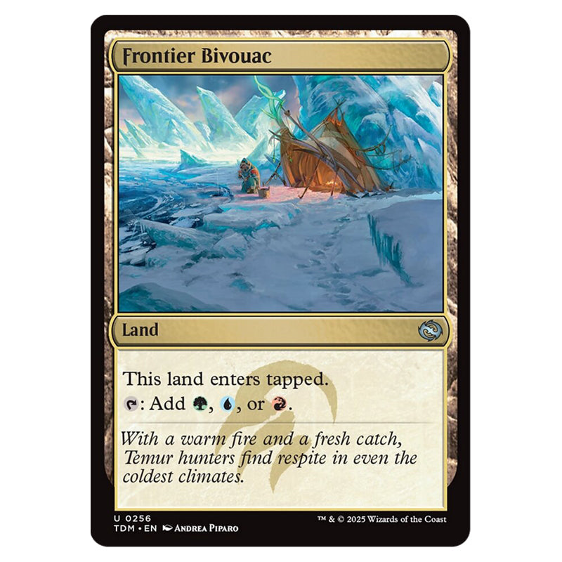 Frontier Bivouac is a Uncommon, Land card from the Magic The Gathering set Tarkir: Dragonstorm (MTGSC-TDM-0256)