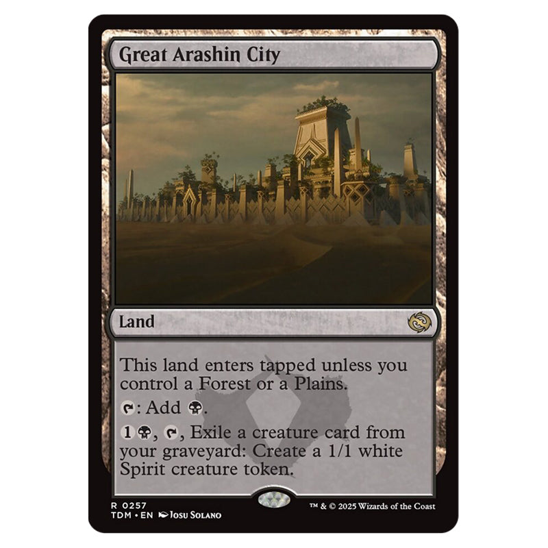 Great Arashin City is a Rare, Land card from the Magic The Gathering set Tarkir: Dragonstorm (MTGSC-TDM-0257)