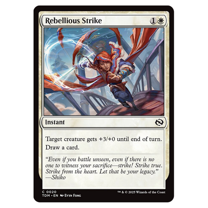 Rebellious Strike is a Common, Instant card from the Magic The Gathering set Tarkir: Dragonstorm (MTGSC-TDM-0020)