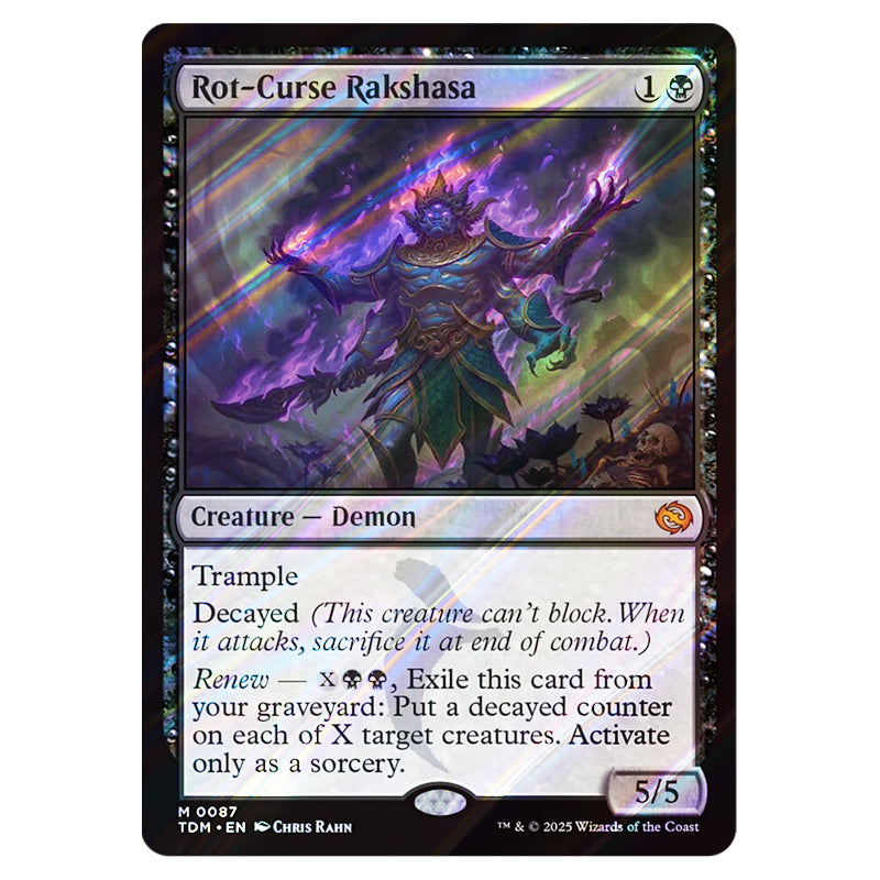 Rot-Curse Rakshasa is a Mythic, Creature - Demon card from the Magic The Gathering set Tarkir: Dragonstorm (MTGSC-TDM-0087)