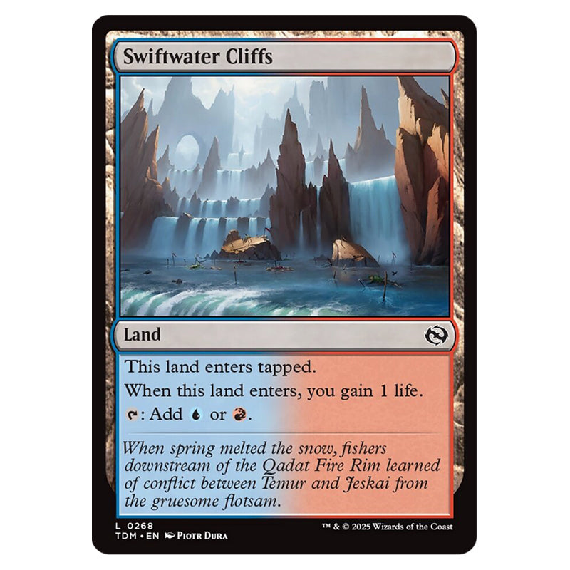 Swiftwater Cliffs is a Common, Land card from the Magic The Gathering set Tarkir: Dragonstorm (MTGSC-TDM-0268)