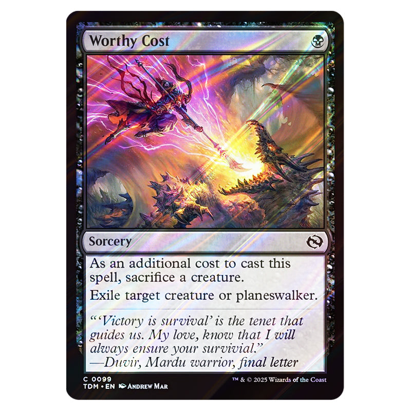 Worthy Cost is a Common, Sorcery card from the Magic The Gathering set Tarkir: Dragonstorm (MTGSC-TDM-0099)
