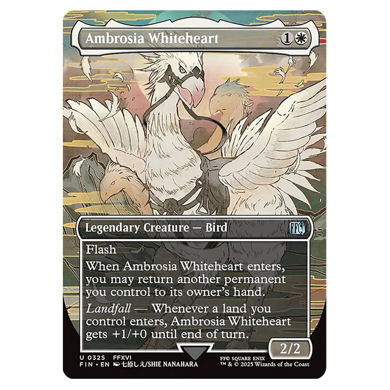 Ambrosia Whiteheart is a Uncommon, Legendary Creature - Bird card from the Magic The Gathering set Universes Beyond - Final Fantasy (MTGSC-FIN-0325)