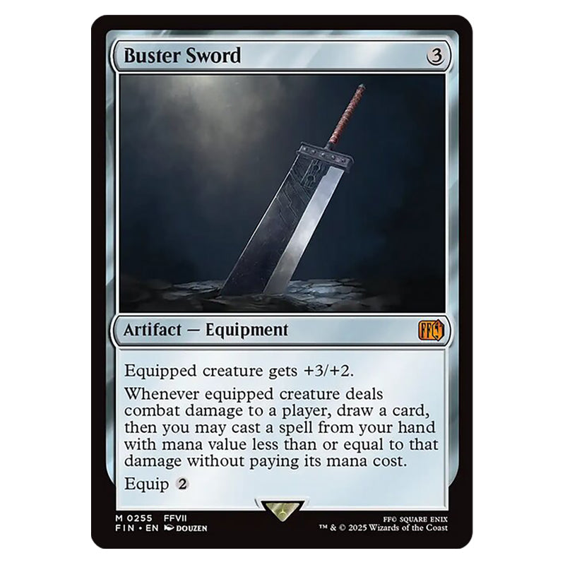 Buster Sword is a Mythic, Artifact - Equipment card from the Magic The Gathering set Universes Beyond - Final Fantasy (MTGSC-FIN-0255)