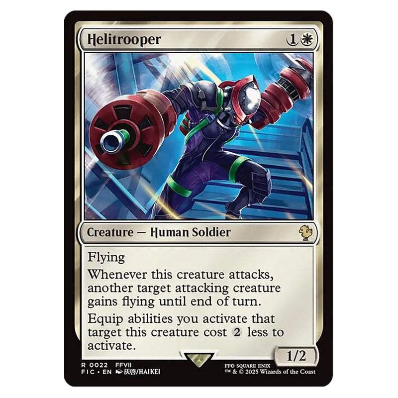 Helitrooper is a Rare, Creature - Human Soldier card from the Magic The Gathering set Universes Beyond - Final Fantasy - Commander (MTGSC-FIC-0022)