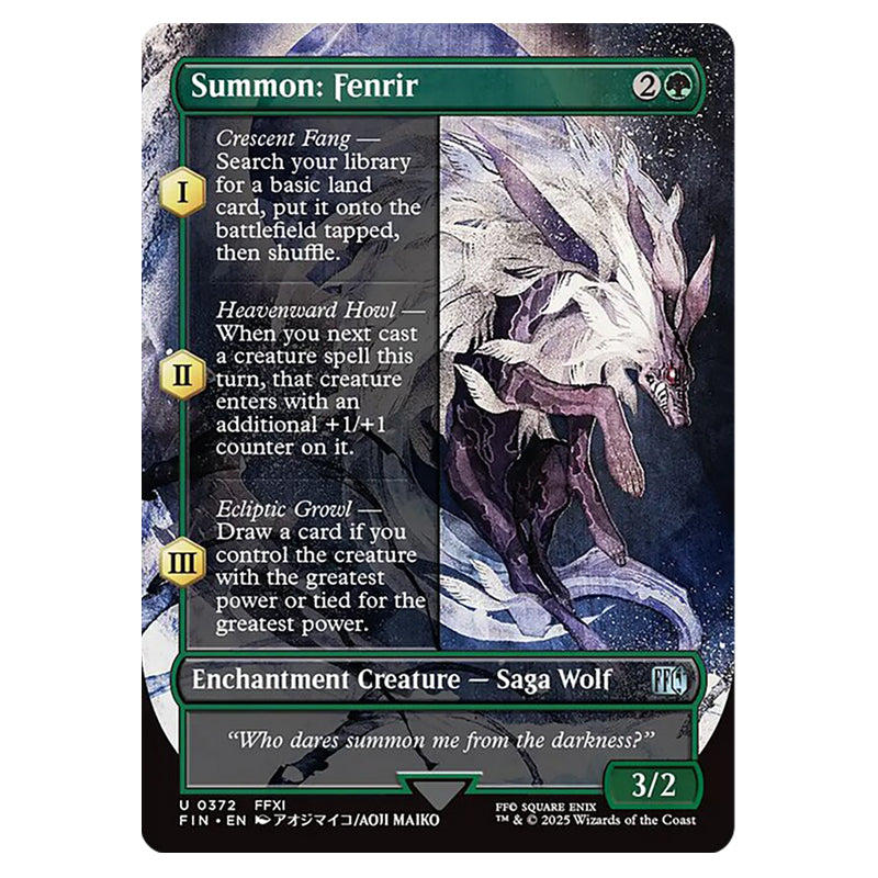 Summon: Fenrir is a Uncommon, Enchantment Creature - Saga Wolf card from the Magic The Gathering set Universes Beyond - Final Fantasy (MTGSC-FIN-0372)