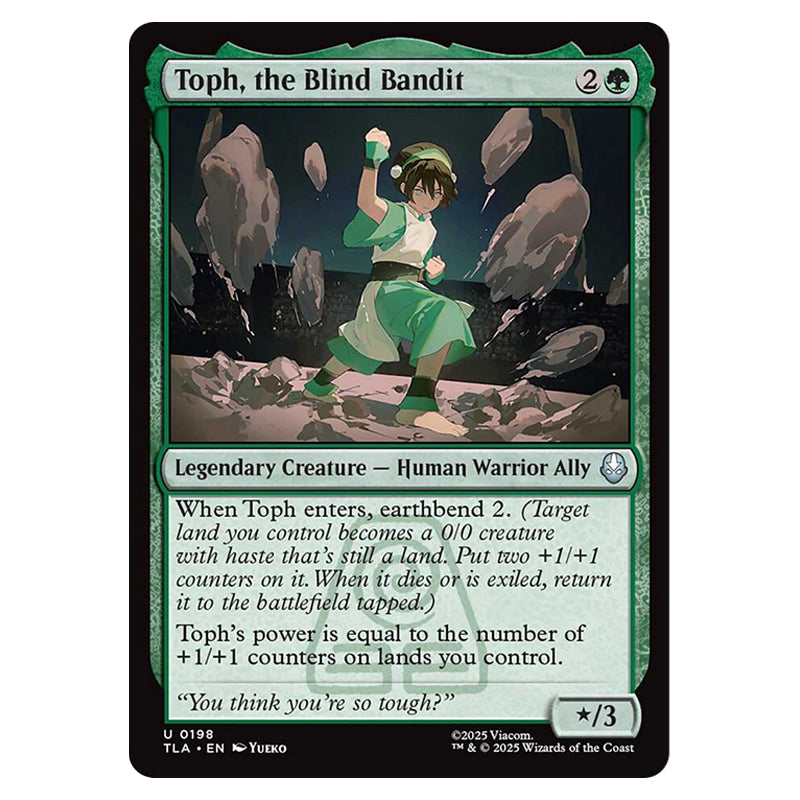 Toph, the Blind Bandit is a Uncommon, Legendary Creature - Human Warrior Ally card from the Magic The Gathering set Avatar The Last Airbender (MTGSC-TLA-0198)