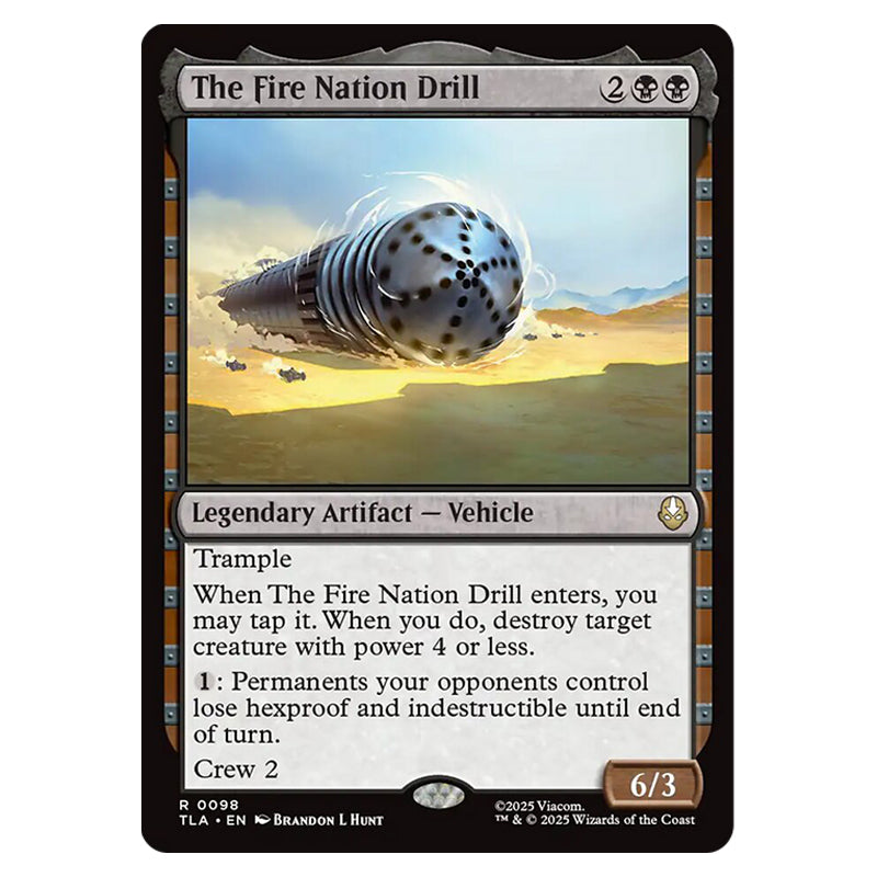The Fire Nation Drill is a Rare, Legendary Artifact - Vehicle card from the Magic The Gathering set Avatar The Last Airbender (MTGSC-TLA-0098)
