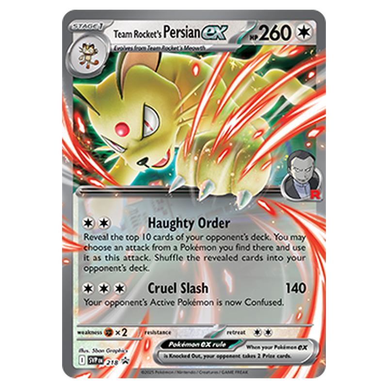 Team Rocket's Persian ex SVP218 is a Pokemon Card from the Set SV Black Star Promos.