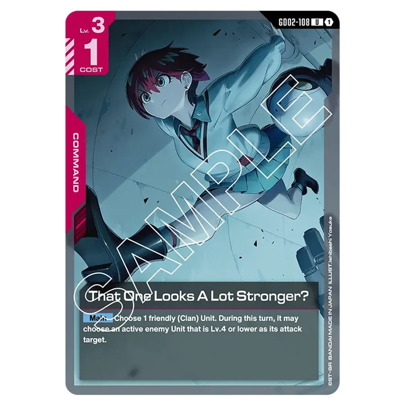 That One Looks A Lot Stronger? is a COMMAND card from the Gundam Card Game set Dual Impact (GD02-108)