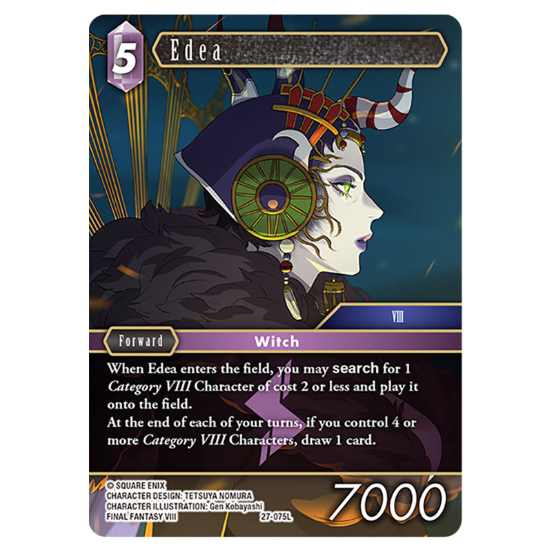 Edea is a Legend (Forward / Lightning) foil card from the Final Fantasy set Journey of Discovery (27-075L)