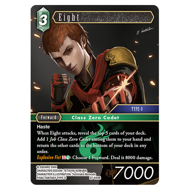 Eight is a Rare (Forward / Wind) foil card from the Final Fantasy set Journey of Discovery (27-040R)